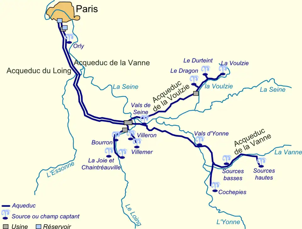 - ↑ « L’alimentation en eau de Paris : une évolution par étapes sur 150 ans » [PDF], sur le site de la Société géologique de France (consulté le ), p. 4.