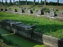 Le port antique est situé en bordure du fleuve Natissa sur environ 400 m. Il était constitué d'une darse de 45 m de large (aujourd'hui comblée et plantée de cyprès), d'un bord de quai sur deux niveaux avec des anneaux d'amarrage en pierre taillée(*) et d'un quai d'une largeur d'une trentaine de mètres occupée par des entrepôts adossés à l'ancienne enceinte républicaine de la ville. Strabon (env. 65 av. J.-C - 25 ap. J.-C) cite déjà ce port pour ces échanges entre pays méditerranéens et pays transalpins. Le port a été agrandi par l'empereur Claude (41-54 ap. J.-C) que l'on connait aussi pour ses travaux portuaires près d'Ostie.