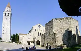 L'église la plus importante, mère d'Aquilée, a des origines apostoliques: saint Marc, envoyé par saint Pierre pour évangéliser la ville, consacre saint Fortunat d'Aquilée comme premier évêque d'Aquilée. La basilique est le plus ancien édifice de culte chrétien du nord-est de l'Italie. Malgré les diverses interventions ultérieures, la basilique d'Aquilée conserve son apparence du XIe siècle.