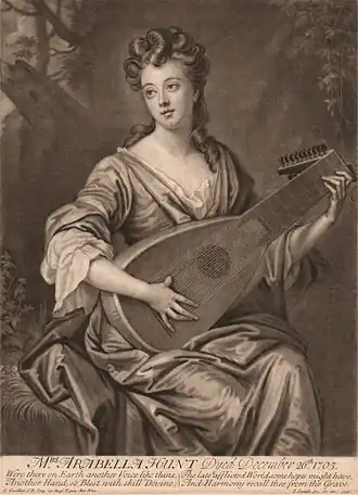 Arabella Hunt, née à Londres le et morte dans la même ville le , est une soprano et luthiste anglaise célèbre pour ses qualités de musicienne ainsi que pour sa vie tumultueuse.