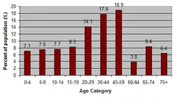 La tranche d'âge la plus nombreuse est la tranche 45-59 ans qui représente près de 19 % de la population.