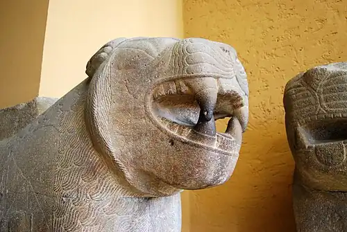 Sphinx et lion. Musée national d'Alep.- Paire de statues colossales de lions gardiens de portes. Pergamon Museum.