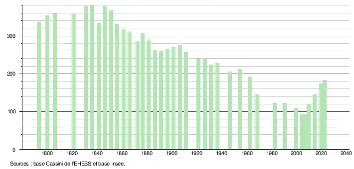 - ↑ Fiches Insee - Populations de référence de la commune pour les années 2006, 2007, 2008, 2009, 2010, 2011, 2012, 2013, 2014, 2015, 2016, 2017, 2018, 2019, 2020, 2021 et 2022.