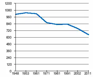En 2011, l'âge moyen de la population était de 45,2 ans, 42,3 ans pour les hommes et 48 ans pour les femmes[5].