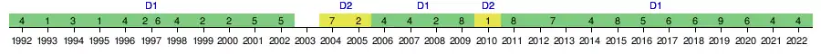 Après une période d'oscillation entre la première et la deuxième division, il évolue continuellement dans l'élite depuis la saison 2011.