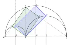 Propriété du rectangle : Le segment BH coupe le demi-cercle BA en D. Le segment CH coupe le demi-cercle AC en E. Alors DHEA est un rectangle.