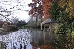 En franchissant la grille d’entrée, le visiteur est au milieu d’une vaste pelouse bordée à gauche par un étang agrémenté en son centre par l’ "Ile Amélie" peuplée de cyprès chauves et de Pterocarya du Caucase donnant des teintes automnales rouille et or. Cette pièce d’eau se rétrécit et se termine par une fabrique, le "lavoir à colonnes".
