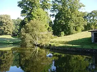 Éléments remarquables : bassin "cache-beurre", urne funéraire gallo-romaine, fabriques : volière en granit, kiosque en châtaignier (refait suivant le modèle initial en 2015), oratoire Sainte Anne créé en 2014.