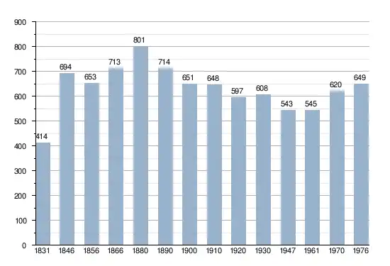 - Sources : INS, Rem. : 1831 jusqu'en 1970 = recensements, 1976 = nombre d'habitants au 31 décembre.