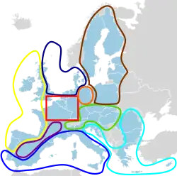 Ce territoire comprend le centre-est de la France, le sud de l'Allemagne, le nord de l'Italie, l'Autriche et un territoire hors de l'Union : la Suisse.