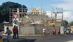 - ↑ The final line of this inscription is omitted from the plaque on the replica arch.