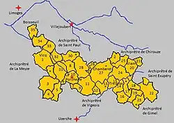 À l'origine, cet archiprêtré englobait tout le territoire au sud de Limoges. De Limoges, on rejoignait le trajet antique nord-sud (Villejoubert-Uzerche) à La Porcherie, en suivant le tracé de la rivière Briance. Cet espace de très grande taille fut ensuite découpé pour s'adapter à l'émergence des abbayes : Beaulieu, Tulle, Uzerche, Vigeois[1].)