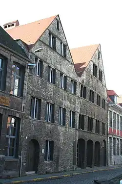 Le type de constructions de Lille est connu depuis la fin du XIIIe siècle à partir d’une loi de mai 1287 du Comte Gui de Dampierre et du conseil de la ville qui prévoit que chaque contribuable a le droit de se construire une seule demeure. Les maisons de ville mitoyennes naissent de ce droit. À l’intérieur de ses remparts, la ville était dense avec un maximum de maisons pour un minimum de dépenses publique. La grande majorité des maisons étaient en bois, la pierre de taille ou la maçonnerie étant réservée aux édifices prestigieux, religieux ou bâtiments publics. L’ échevinage chargé d’assurer la stabilité des rangées de maisons ordonne de réaliser une continuité de charpente entre mitoyens sur les terrains encore vides. La largeur des maisons de 4 à 6 mètres correspondait à la longueur des poutres en chênes équarries des forêts environnantes, leur profondeur de 9 à 12 mètres sur 3 ou 4 niveaux établis sur une cave fournissait une surface habitable convenable pour une famille, éventuellement avec ses serviteurs et apprentis. Le rez-de-chaussée permettait d’installer un comptoir pour un commerçant, un ouvroir pour un artisan. Une cour à l’arrière était terminée au fond par un petit bâtiment consacré aux travaux ménagers. La cave ouvrait sur la rue par un burguet, trappe inclinée posée sur deux murets en triangle, la partie du trottoir au pied de la façade permettant le déploiement d’un étal.