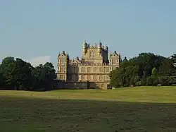 L’architecture Renaissance ne gagna l’Angleterre que sous le règne d’Élisabeth Ire, longtemps après s'être épanouie dans les anciens Pays-Bas où, parmi d'autres motifs originaux, elle s'y enrichit du pignon à volutes et du cuir découpé flamand pour couvrir les murs de motifs géométriques. On retrouve ces deux éléments non seulement sur les tours de Wollaton Hall mais aussi à Montacute House. C'est encore à cette époque que les maisons anglaises adoptèrent le concept italien de salle de réception en galerie[1]. En Angleterre, la Renaissance tend à s'exprimer par de hautes façades carrées comme celle de Longleat House. Souvent, les châteaux comportent des tours symétriques qui rappellent l'architecture militaire médiévale.