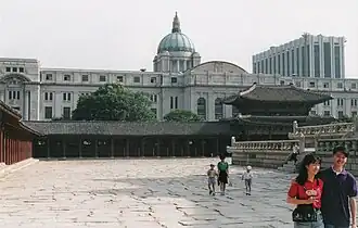 - ↑ (en) « Architecture and Design », sur National Museum of Korea (consulté le ). Voir aussi : (en) « Government to reformulate historical and ecological project in Yongsan district », sur Hankyore, (consulté le ).