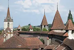 Avec l'architecture gothique les villes se dotent de cathédrales symboles de puissance, comme celles de Genève, Lausanne, Fribourg ou Berne[13].
