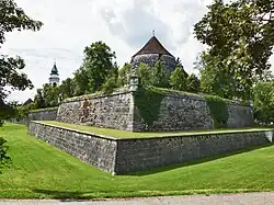 Les villes de Genève, Berne, Soleure et Zurich[33] se dotent de nouvelles fortifications capables de résister aux artilleries modernes. Les bastions du XVIe siècle sont remplacés par des ouvrages en pierres de taille enrobés de terre. Il subsiste à Soleure les restes de la ceinture de fortification baroque, construite durant 50 ans à partir de 1667 et inspirée des théories de Vauban[ms 29].
