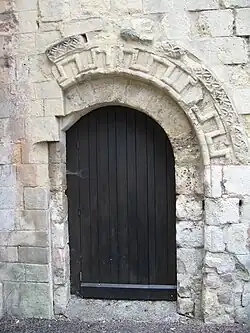 Les décors de frettes crénelées ornant les arcs en plein cintre sont caractéristiques de l'architecture médiévale normande. On en retrouve des exemples dans l'architecture civile (ex : salle de l'Échiquier du château de Caen), mais surtout dans de nombreuses églises (ex : abbaye aux Dames, église Saint-Pierre de Thaon).