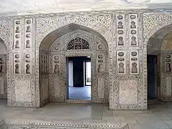 Le diwan-i Khass est un pavillon à piliers et arcades polylobées surmonté de quatre châtrî et décoré de sculptures et d'incrustations. Le décor est assez chargé et donne une grande importance aux fleurs. Au hammam, le décor est également réalisé en pierre dure incrustée dans le marbre.