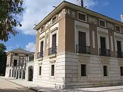 Juan de Villanueva, élève de Rodriguez, se distinguera quant à lui comme un des plus grands architectes néoclassiques espagnols. Juan de Villanueva étudia à Rome, où il put comparer les pompeux palais et églises baroques à la pureté formelle des monuments antiques, et devint en 1786 l'architecte officiel de la ville de Madrid, avant d'être nommé en 1789 architecte principal des palais royaux puis directeur de l'Académie de San Fernando en 1792. Sa Casita del Principe, construite en 1771, constitue la première œuvre pleinement néoclassique en Espagne, rompant avec le baroque par ses principes de composition, notamment par l'alignement d'éléments indépendants. De Villanueva réalisa également entre 1790 et 1808 le sévère pavillon de l'Observatoire, de plan cruciforme et couronné par un petit édifice monoptère ; il constitue une des premières réalisations d'inspiration néo-grecque en Espagne. il reconstruisit aussi la Plaza Mayor de Madrid, détruite dans un incendie en 1790, et conçut de nombreux plans de constructions communales pour Madrid. Son œuvre majeure demeure cependant le musée du Prado, réalisé entre 1785 et 1819, dont les salles d'exposition sont couvertes de voûtes à caissons ainsi que d'un dôme, également à caissons. Ces derniers, ayant au départ une fonction structurelle, font directement référence à l'architecture romaine. Le Prado fera office de modèle pour bon nombre de musées construits ultérieurement[1],[2].