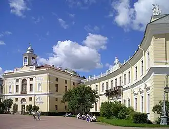 Les principaux monuments du classicisme russe, qui sont aussi le plus remarquables de Saint-Pétersbourg appartiennent à des écoles étrangères : à l'école française: le palais de l'Académie, la cathédrale Saint-Isaac et à l'école italienne : le palais de marbre, le palais Alexandre, le palais Saint-Michel. On n'y voit rien de spécifiquement russe mais on discerne plutôt des adaptations des temples de Paestum et de Saint-Pierre de Rome[16].