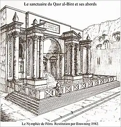 - ↑ (en) F. Zayadine, « Recent Excavation & Restoration at Qasr El Bint of Petra », ADAJ (Annual of the Department of Antiquities, Amman-Jordan), vol. 29, , p. 239-249.