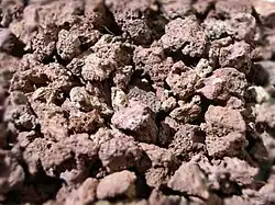 | Opus caementicium | Maçonnerie faite de mortier (mélange de chaux et de roche volcanique), de fragments de pierre et d'éléments en terre cuite qui s'apparente au béton. | ![]() |