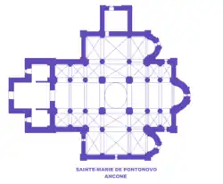 Le plan des églises est le plus traditionnel et reprend celui des basiliques de Ravenne. Pour répondre aux nouvelles demandes de la liturgie, les architectes minimisent la longueur et la hauteur des transepts mais s'attachent à couvrir de voûtes toutes les parties des édifices pour les protéger du feu et grâce à la réverbération des voûtes créer une ambiance miraculeuse.