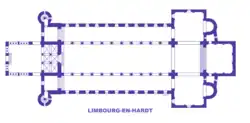 Le massif occidental est précédé d'un avant-corps qui évoque le weswerk carolingien de l'abbaye de Corvey. Il comporte trois niveaux, le premier donne accès à la nef, puis une tribune est largement ouverte sur l'église et le troisième stabilise les deux tours de 45 m de hauteur.