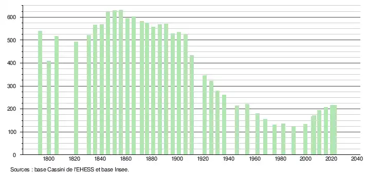 - ↑ Fiches Insee - Populations de référence de la commune pour les années 2006, 2007, 2008, 2009, 2010, 2011, 2012, 2013, 2014, 2015, 2016, 2017, 2018, 2019, 2020, 2021 et 2022.