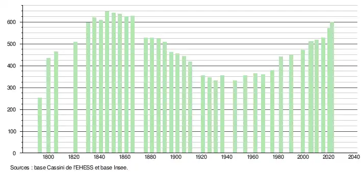 - ↑ Population municipale de référence en vigueur au 1er janvier 2025, millésimée 2022, définie dans les limites territoriales en vigueur au 1er janvier 2024, date de référence statistique : 1er janvier 2022.