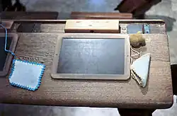 On écrit sur des ardoises avec une craie ou un style à ardoise, lui-même fait d’ardoise, de stéatite ou d’argile. La craie ou le stylet laissent une marque claire, facilement effaçable par un chiffon ou une éponge humide.