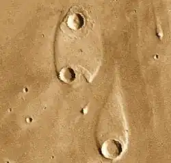 Certaines formations rocheuses semblent être des îlots sédimentaires façonnés par le courant dans la région d'Ares Vallis.