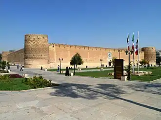 La citadelle est bâtie à l'instigation du premier roi de la dynastie Zand, Karim Khan. Les travaux de la forteresse, peut-être destinée à rivaliser avec les monuments d'Ispahan, débutent vers 1766. De fait, Karim Khan charge quelques-uns des meilleurs architectes du pays de la réalisation des travaux. Construite en l'espace de quelques années, la citadelle devient l'un des palais royaux des souverains Zands. Sous la dynastie Kadjar (1781-1925), la forteresse devient le siège du gouverneur de la province de Fars, avant d'être transformée en prison par le premier souverain Pahlavi, Reza Shah.