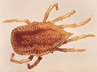 Ces tiques sont des animaux de petites tailles et leurs larves (qui se développent en mordant un animal et y effectuant un repas de sang et de chair hydrolysée) sont très petites.