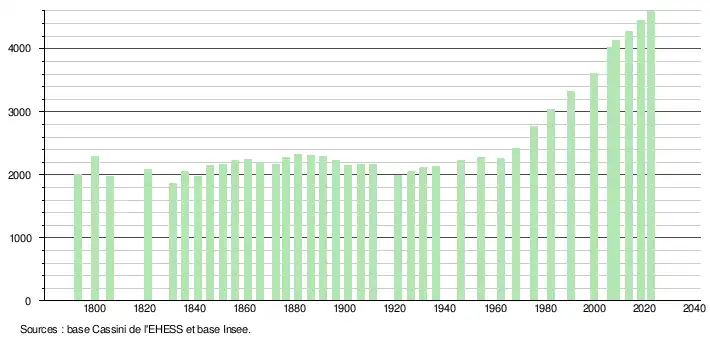 - ↑ Population municipale de référence en vigueur au 1er janvier 2025, millésimée 2022, définie dans les limites territoriales en vigueur au 1er janvier 2024, date de référence statistique : 1er janvier 2022.