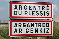 En breton, Argentré-du-Plessis s'écrit Argantred-ar-Genkiz, en gallo, c'est Arjantrae[réf. nécessaire].