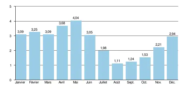 Le module de la rivière à Cos est de 2,60 m3/s.