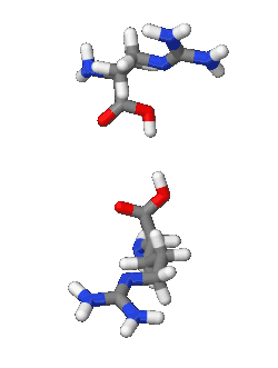 | L ou S(+)-arginine (haut) et D ou R(–)-arginine (bas)