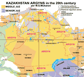 - ↑ (en) The gene pool of Argyn in the context of generic structure of Kazakhs according to data on SNP-Y-Chromosome marker, M. Zhabagin et autres chercheurs, Center for life science, Nazarbayev University.