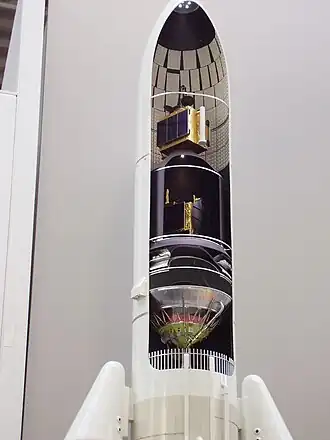 Ariane 5 est un ancien lanceur spatial lourd de l'Agence spatiale européenne (ESA), développé pour placer des satellites sur orbite géostationnaire et des charges lourdes en orbite basse. Dans sa dernière version, il peut placer 21 tonnes en orbite basse et 10,5 tonnes sur une orbite de transfert géostationnaire. Il effectue son premier vol le avec la mission V-88 et le lancement du 117e et dernier exemplaire a eu lieu le avec la mission VA-261.