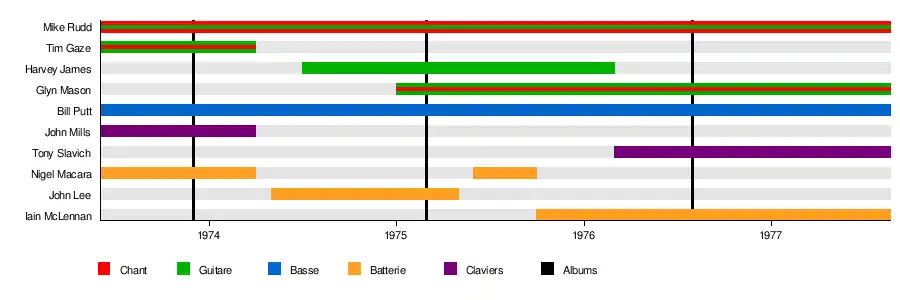 - Mike Rudd (en) : chant, guitare, harmonica, chœurs (1973-1977)
