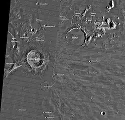 - 1 2 3 4 (en) « Gazetteer of Planetary Nomenclature - Moon Nomenclature: Mons, montes »(Archive.org • Wikiwix • Archive.is • Google • Que faire ?), sur planetarynames.wr.usgs.gov Astrogeology Research Program, U.S. Geological Survey.