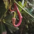 Les fleurs poussent sur une tige florale soyeuse et mesurent de 2 à 5 cm de long. Elles ont un tube floral fortement incurvé avec une marge colorée en jaune et violet à l'intérieur et une couleur violette ou violet-brun sur le bord. Les fruits sont des capsules cylindriques de 1 à 4 cm de long. La floraison a lieu de janvier à juin[1].