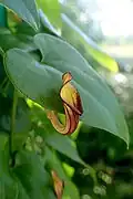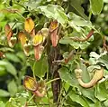Il s'agit d'une plante grimpante à feuilles persistantes et ligneuses qui peut atteindre 5 mètres de haut. Ses feuilles sont ovales-lancéolées, coriaces et glabres. Elles ont une forme de cœur à leur base.