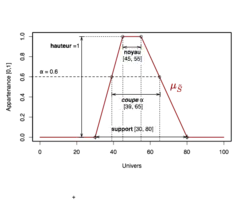 La figure 2 ci-contre illustre la notion de coupe-α pour un ensemble flou trapézoïdal.