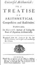 - (la) Universal arithmetick: or, A treatise of arithmetical composition and resolution. To which is added Dr. Halley's Method of finding the roots of equations arithmetically (1728)