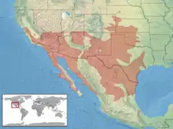 - dans le nord du Mexique dans les États d'Aguascalientes, de Basse-Californie, de Chihuahua, du Coahuila, de Durango, du Nuevo León, du Sinaloa, du Sonora et du Tamaulipas.
