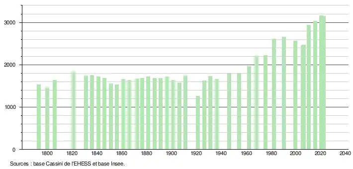 - ↑ Fiches Insee - Populations de référence de la commune pour les années 2006, 2007, 2008, 2009, 2010, 2011, 2012, 2013, 2014, 2015, 2016, 2017, 2018, 2019, 2020, 2021 et 2022.