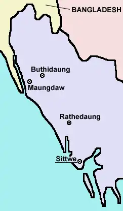 - ↑ (en) « AA Claims Seizure of Buthidaung Near Bangladesh Border », sur The Irrawaddy,